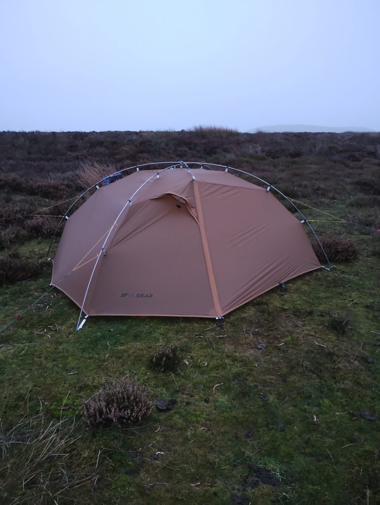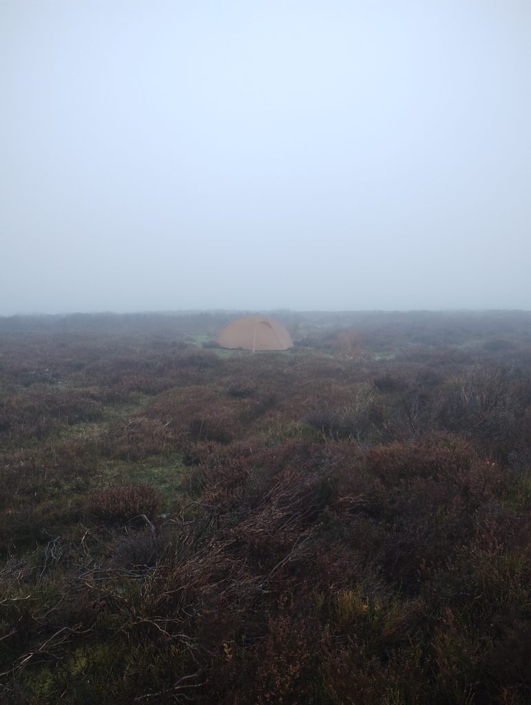 First off I arrived about half an hour before it started to get dark, so I had to find a pitch fairly quickly or face pitching in darkness. This wouldn’t normally be an issue except for the fact that the whole area seemed to be covered in heather. Heather sounds nice I hear you say. To look at yes, to smell it’s scent yes, but to pitch a tent on, definitely not. It’s stems are hard and woody and will perforate your tent in no time. So the search went on. However, I did get lucky and found a patch of clear ground just big enough to get my tent on. Phew!!