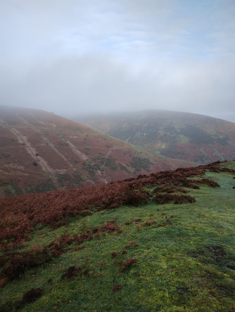 After a short drive (the Long Mynd isn’t that big), I found somewhere else to park up and started again. At this point the mist was clearing in pockets giving some stunning views of the sharp hills in the distance, but only lasting a few minutes before it closed in again.