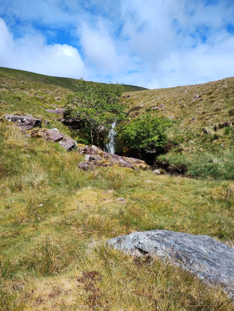 From where we were it was about a 5k walk back to the cars, and once again we made good time, but as we made our way back the weather improved step by step, so we decided to take break and just enjoy what was becoming a beautiful day. We sat at a lovely spot next to a small waterfall overlooking the land as it dropped away in front of us and relished the small amount of sunlight breaking through the clouds as it warmed the air.