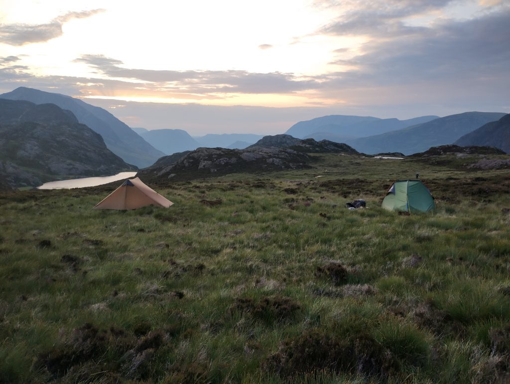 It was up the hill slightly behind Blackbeck tarn that we finally found a pitch where the ground wasn’t sodden, surprising really as it all looked pretty good from a distance, but I guess it was just one of those areas that holds the water like a sponge. However, we found this one spot big enough for both our tents and a little room between and so we pitched up. As soon as that was done it was time to eat, time had slipped by quickly and at this point it was fast approaching 10pm and hunger was hitting hard, chow time. Food was prepped and the bar was opened, for me a nice Chianti, and my buddy had 0% beer at hand, and we began to relax and enjoy the views in the lingering light of a fine June evening.